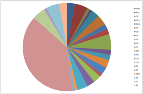 The large area of the pie chart represents teacher talk as opposed to contributions from individual students.